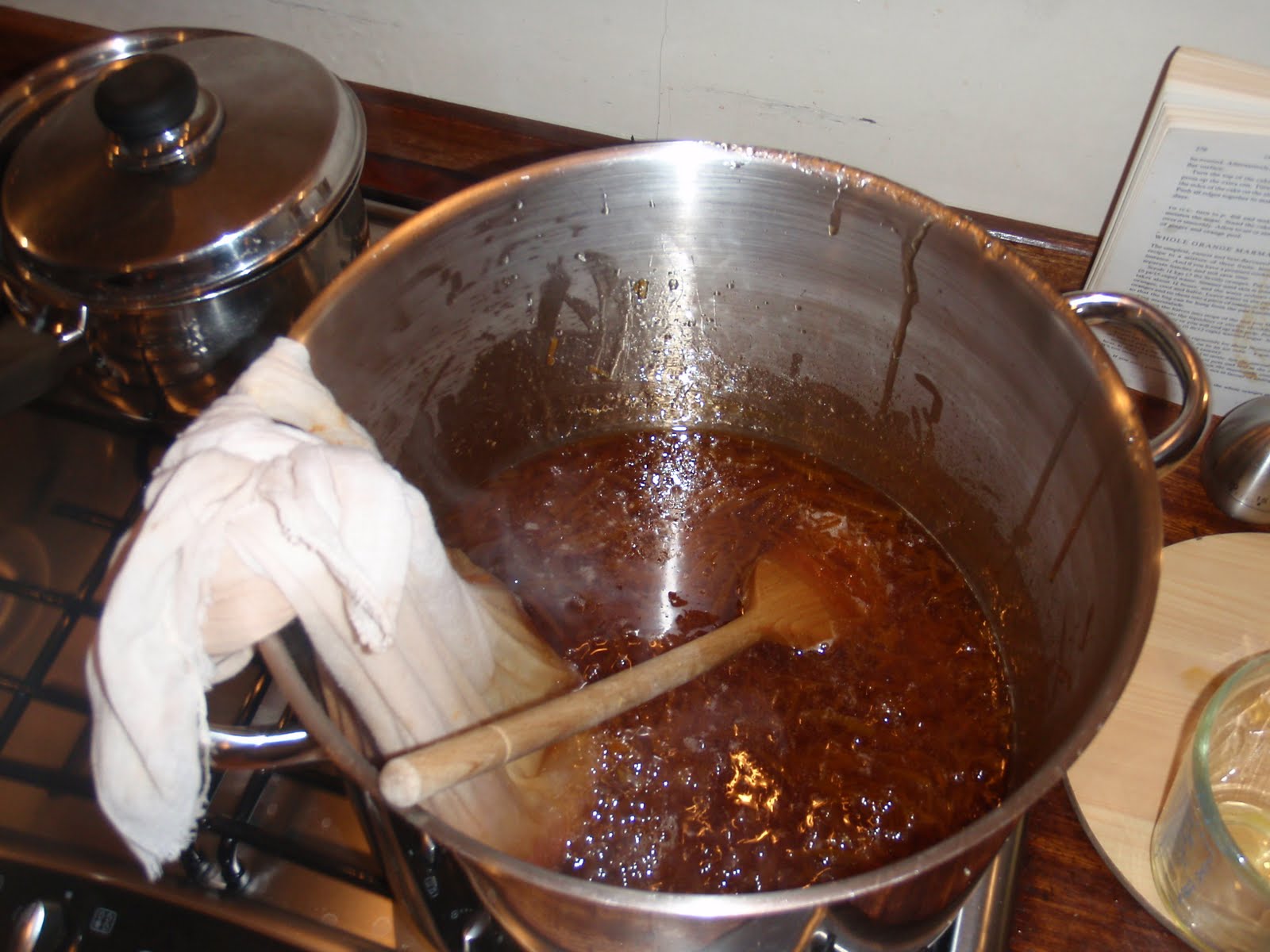 So, I decided to raid Le Boyfriend’s mum’s kitchen and cook. she had already started to make some Seville Orange Marmalade (not the season, but remember, she’s a Mum, so she’s orgsnised and bought some oranges and froze them months ago!) so i learnt how to make marmalade. Chopping the skins of the oranges isn’t a quick job! Particularly if your boyfriend likes fine cut Marmalade. I only say that because i can’t stand the stuff but am sick of buying it for him so i thought I’d give it a go!