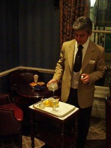 They have this special tray that they make the Martini’s on. Now, personally I don’t actually like normal Martinis and i wasn’t feeling strong enough to go for the Vesper, so i went for a Miss Moneypenny. This delightful concoction is vodka based (all the best cocktails are in my mind), Cointreau, fresh lime and passion fruit. Goodness me it was tasty! So tasty, in fact, that i had to have 3 followed by a nightcap of 2 glasses of Louis Roederer!So the only culinary activity i indulged in was a scrummy bowl of Heinz (because it has to be) baked beans with melted butter and cheese.