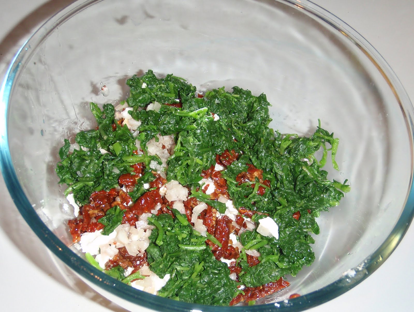 Chop up the feta, the sun-dried tomatoes, shallot and green bits and put the lot into a bowl.