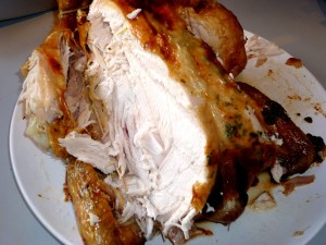 - put a chunk of the butter mix on the end of your fingers (about the size of a stock cube), put your fingers under the skin as far as you can get the squeeze the butter off your fingers, and then squeeze it down the rest of the way from the outside by massaging the skin. It’s really difficult to explain. Next time I’ll get a picture.