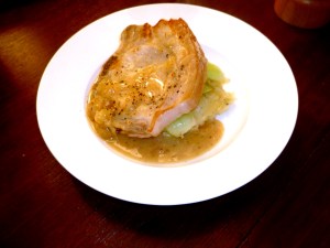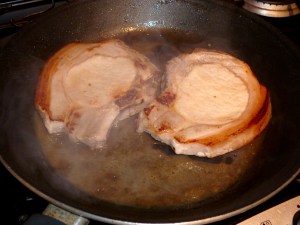 - Take the chops out and set aside, turn the heat off from under the pan