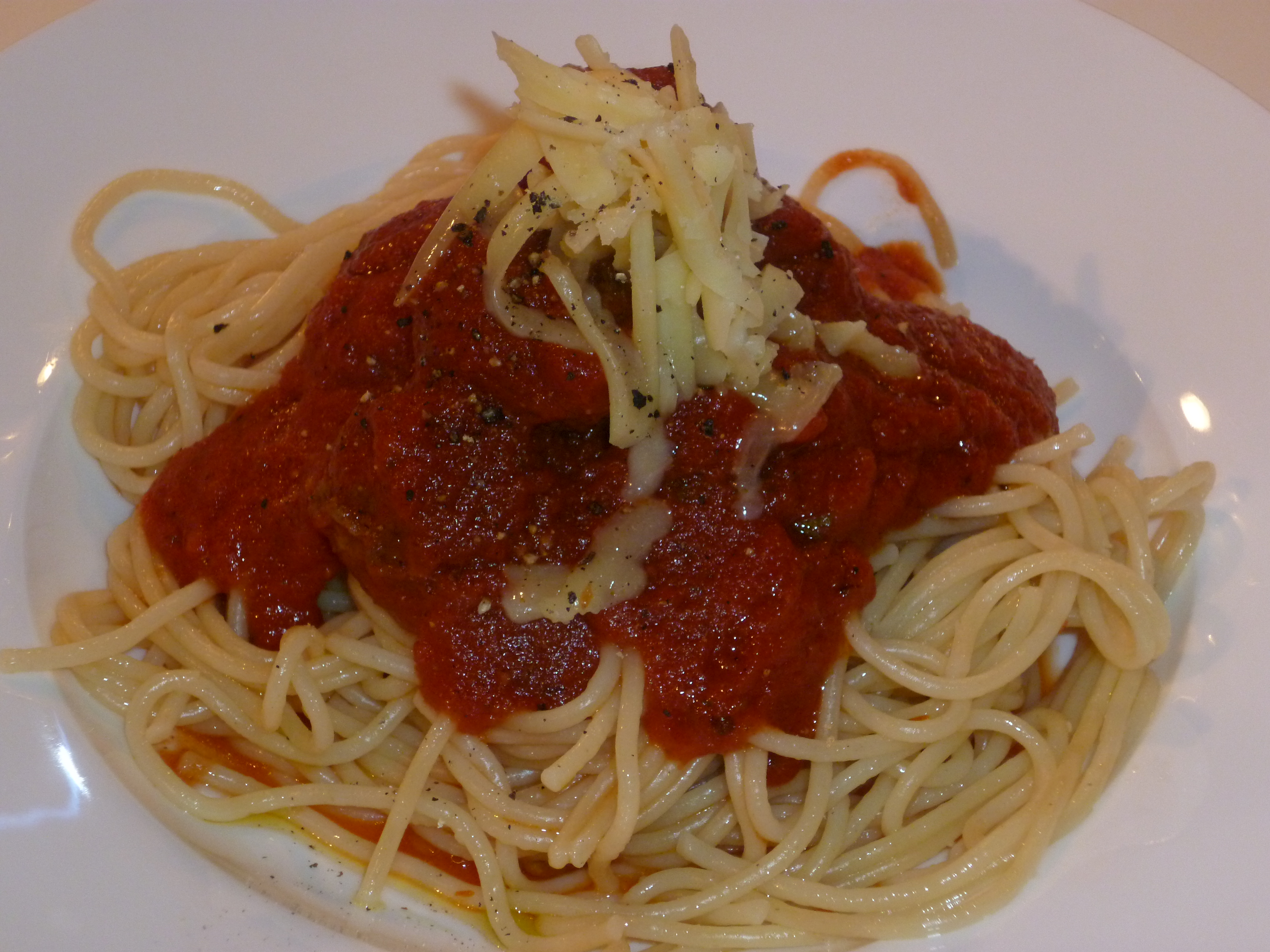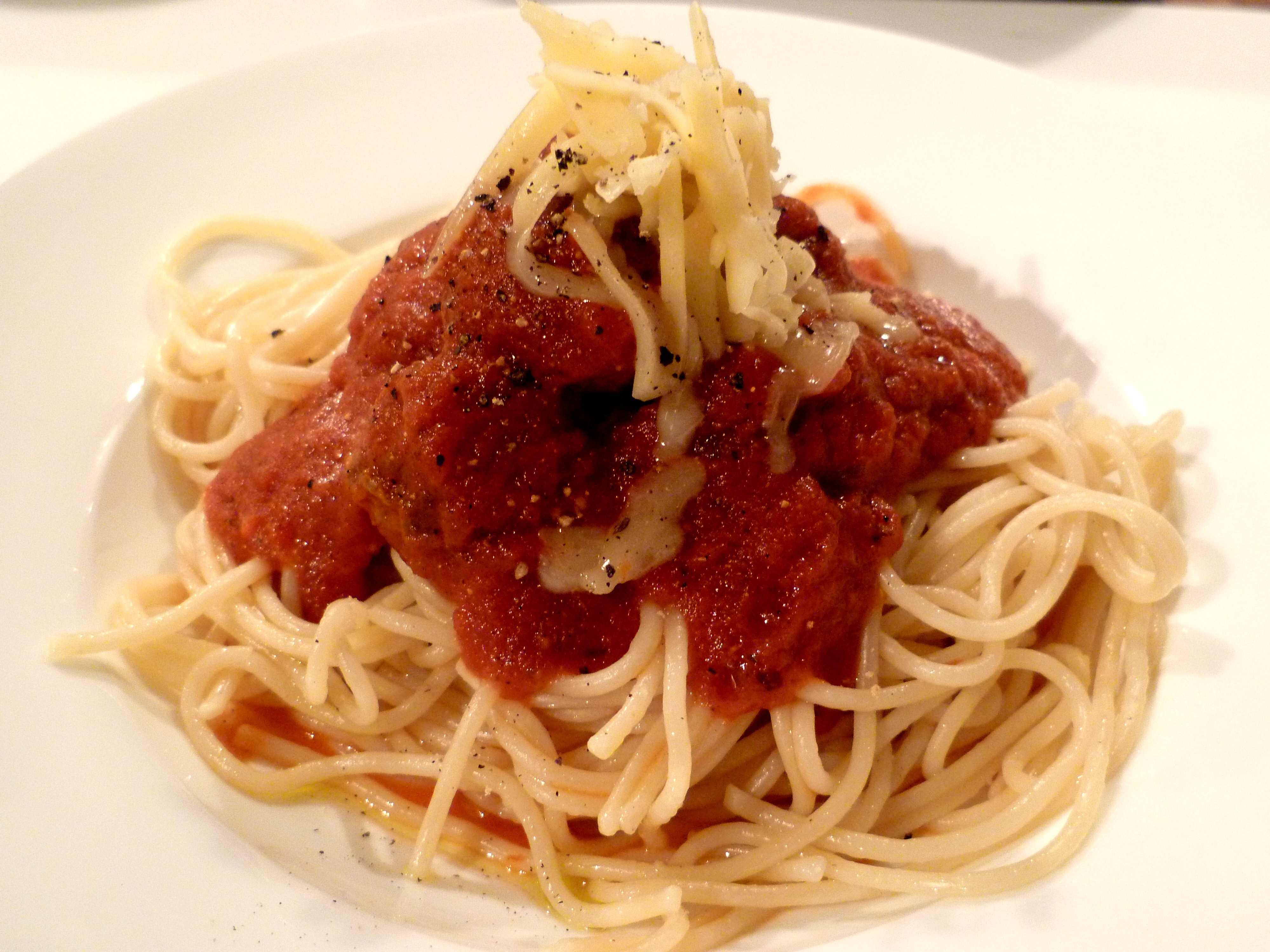 - Pasta on the plate, then meatballs, then sauce on top