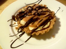 - Once it is liquid and using a teaspoon drizzle the chocolate as messily as you can over the pies