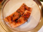 - Lay the two salmon fillets in the bottom of a sieve (pic not from this recipe but just to show you what I’m talking about)