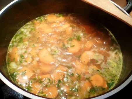 I got back from holiday to find my herb pot overflowing with lots of wonderfully beautiful fragrant herbs. There was so much coriander, so it was to be carrot and coriander soup!
