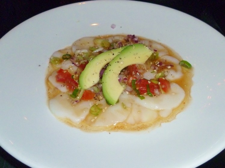 We went for 2 starters between us, a yellow fin tuna Carpaccio (I think) with some sun-dried tomatoes that had been mixed with smoked paprika. This dish would have been utterly divine had it not been for the smoked paprika which totally over-powered the tuna which I imagine would have tasted spectacular with on its own. We also went for a King Scallop Tiraditos which was lovely. It was soft and succulent with a little kick from the chilli and the sesame seeds. The avocado was a touch that I don’t think was needed but didn’t damage the dish.