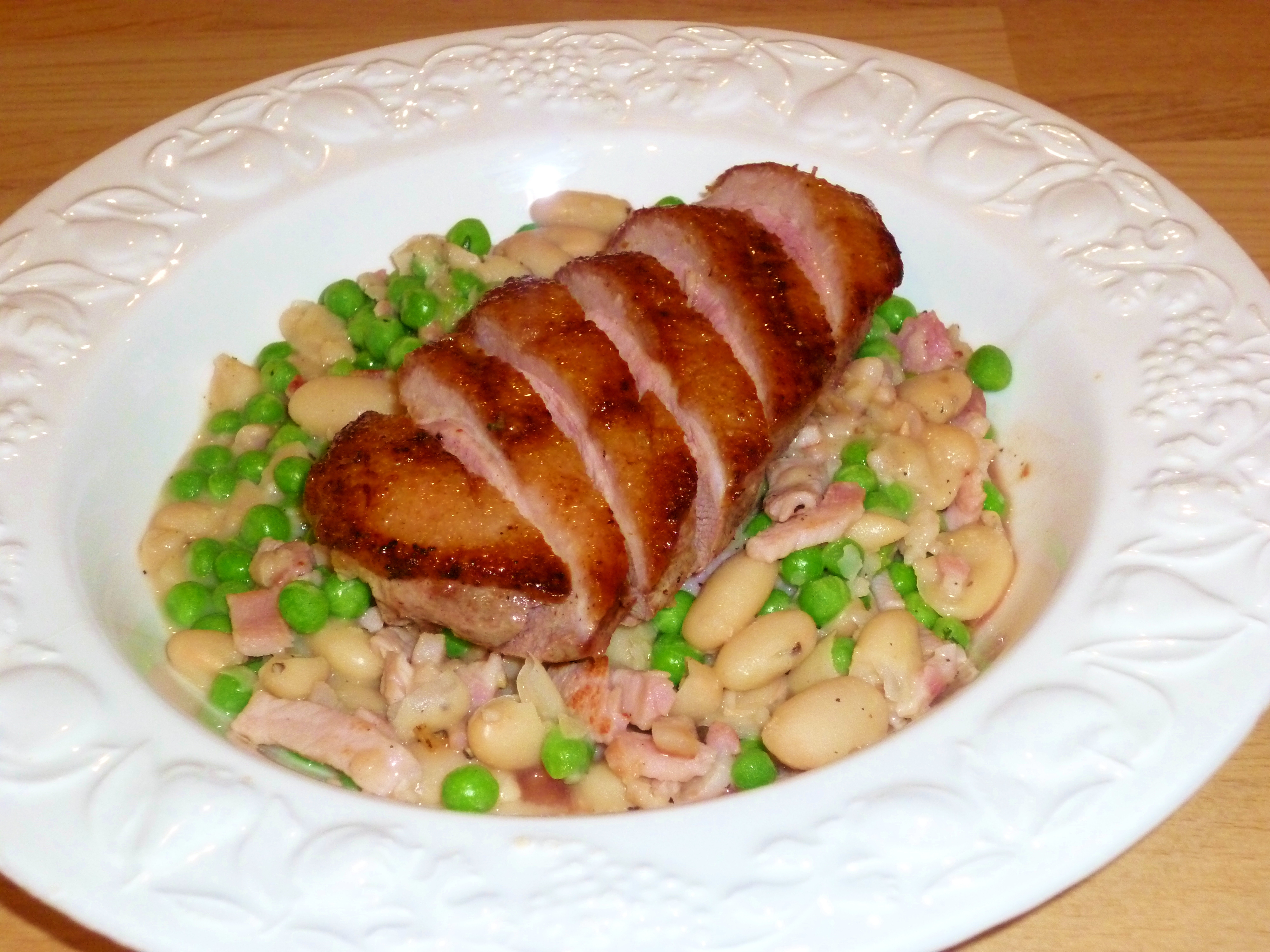 - Slice the breasts on the diagonal and serve on top of the bean mix