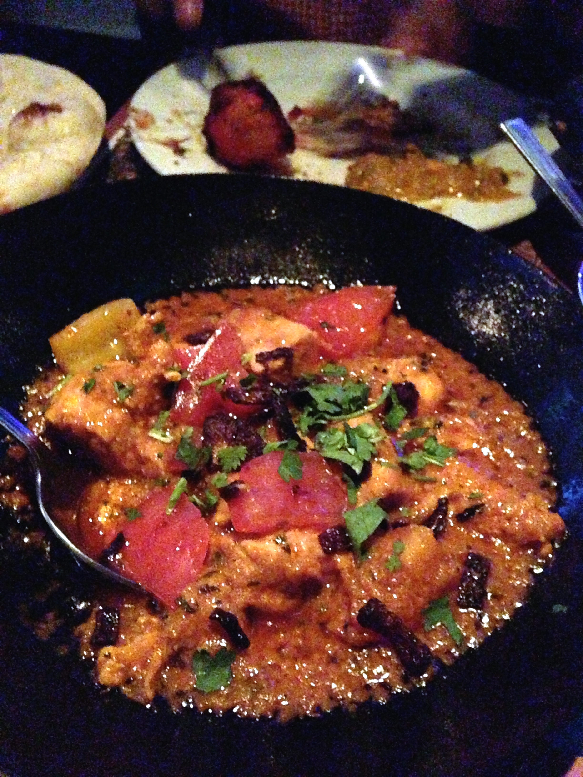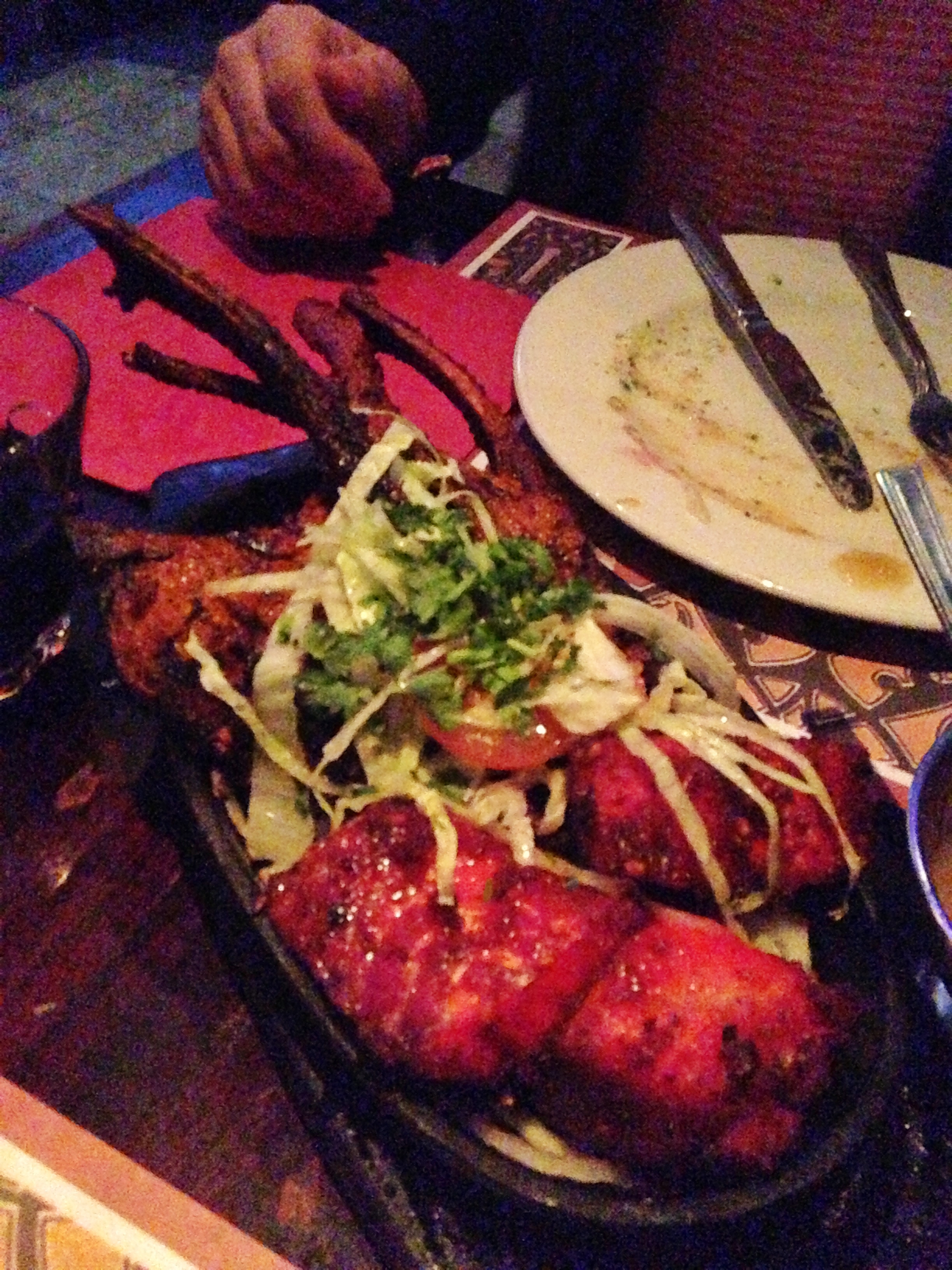 Masala fish, THE lamb chops (those of you who have been there before know the ones I mean), lamb korai, fluffy rice, daal, saag aloo and a naan.