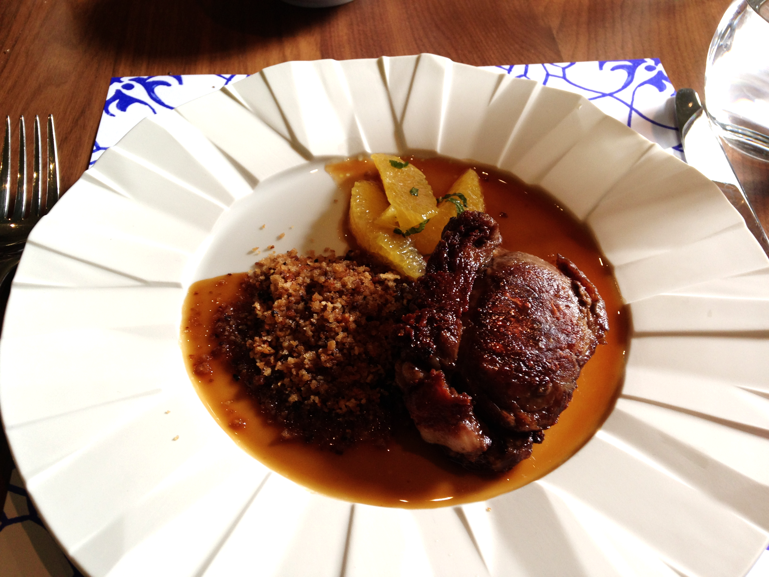Having ordered the milk-fed lamb shoulder, my friend was informed that they didn’t have it, so he changed to an ox tail but with sauteed veg and potatoes which were the lamb accompaniment. I might add here, that were the only table in the entire place – it might have been helpful to know that one of the 6 main courses wasn’t available before ordering…? Anyhoo, the ox cheek arrived. It was big. It was rich. And it was sticky. So sticky in fact that it could have been used to re-tile a bathroom.