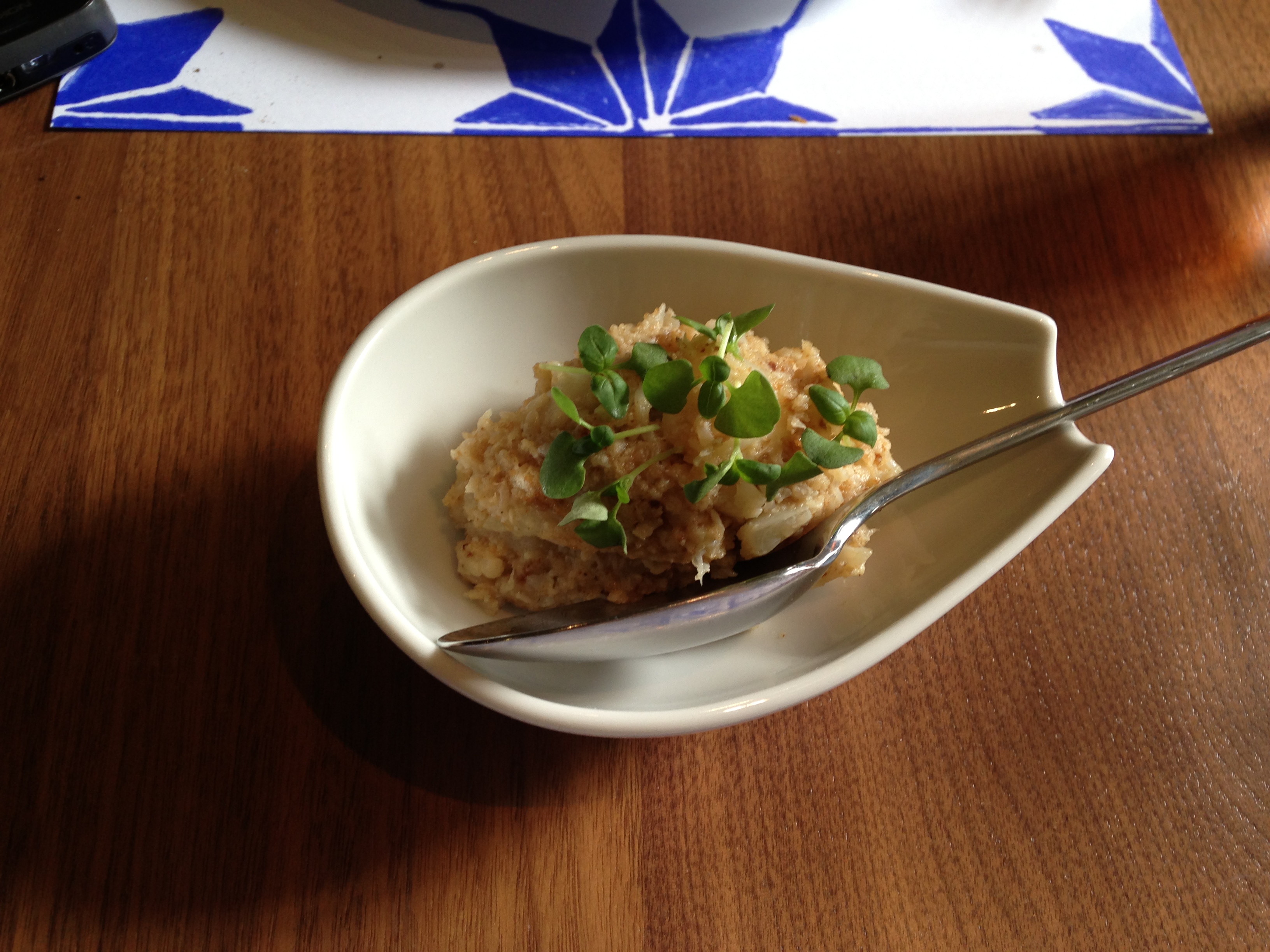 We also had the cauliflower miga with garlic and vinegar as a side – this was just plain odd. It was tepid and tasted more of vinegar than cauliflower.